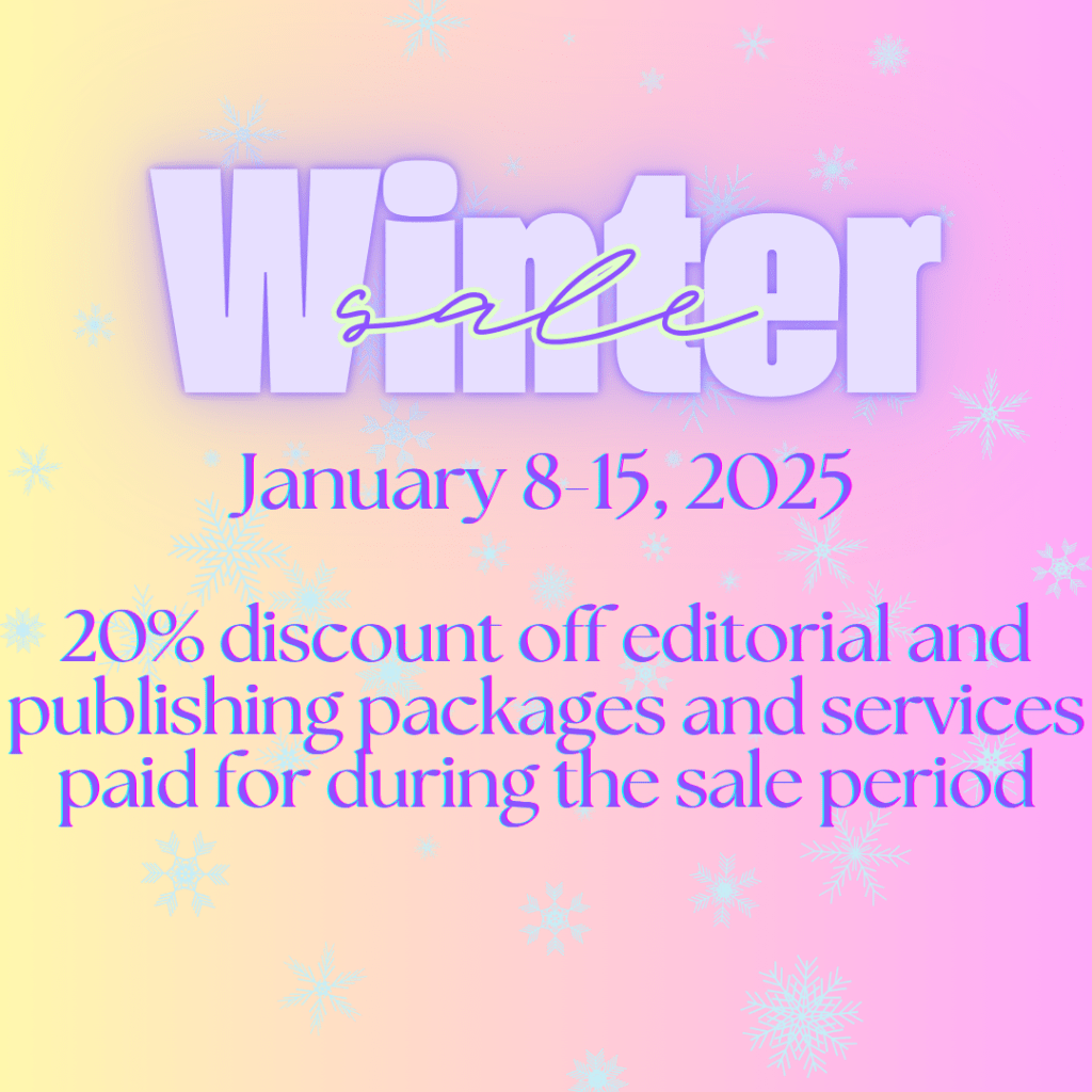 I’m pleased to announce that my winter sale will run from January 8 through January 15 this year. During that time period, a 20% discount will apply to all editiorial and publishing services packages. Packages must be paid for in full during the sale period. For more information or an estimate, please contact me here.